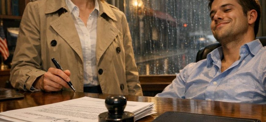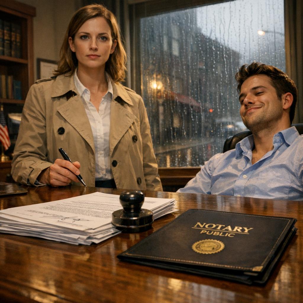 A közjegyző, egy szigorú tekintetű, idősebb asszony, láthatóan hozzászokott az efféle jelenetekhez. Rezzenéstelen arccal rendezgette az iratokat, mintha csak egy újabb hétköznapi ügyet zárna le. Hosszú pályafutása alatt bizonyára látott már cifrább történeteket is.