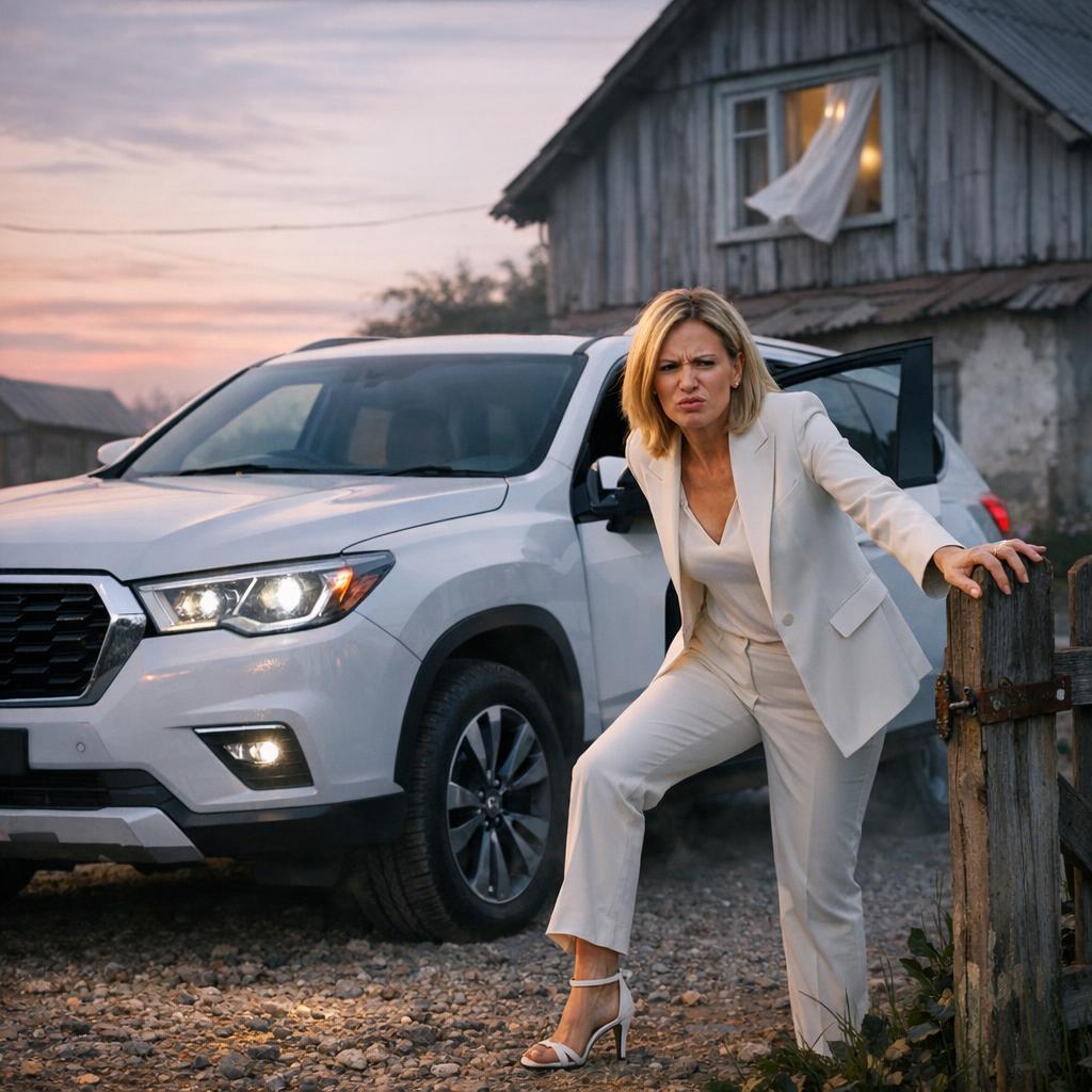 A volán mögött egy elegáns, fehér kosztümöt és tűsarkú szandált viselő hölgy ült. Látható undorral érintette meg a kiskaput, mintha attól tartana, hogy beszennyezi a kezét.